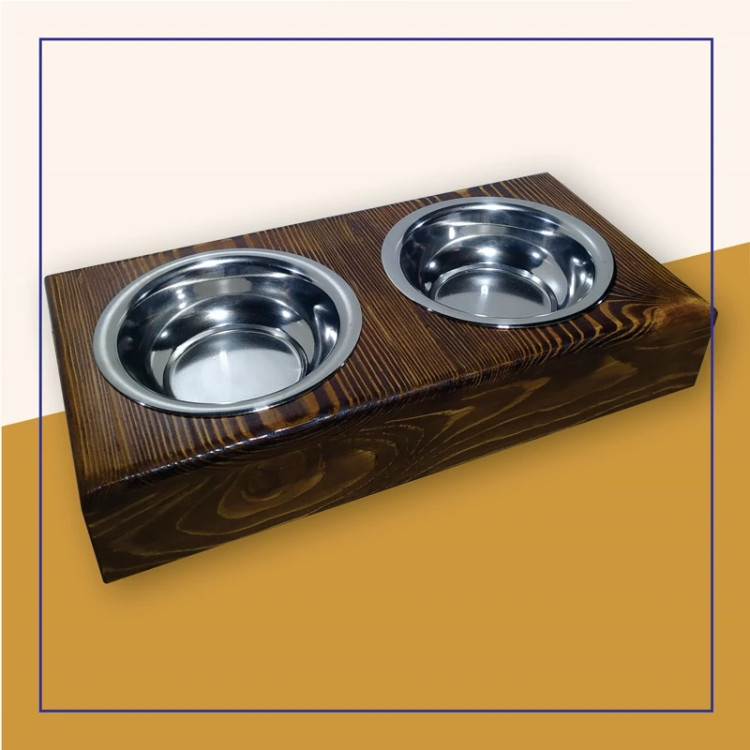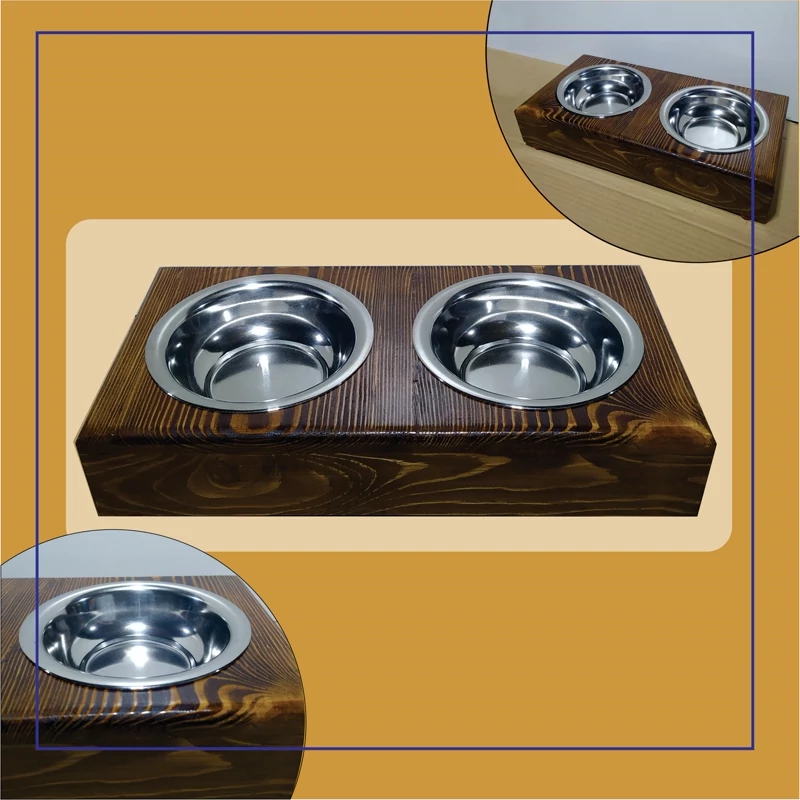 ظرف دو کاسه مخصوص غذای سگ و گربه- کاسه های استیل جدا شونده قابل شستشو- بدنه تمام چوب در رنگ های تیره و روشن