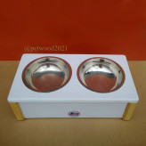 ظرف دو کاسه پایه بلند مخصوص آب و غذای حیوانات خانگی با دو عدد کاسه استیل درجه یک و جدا شونده