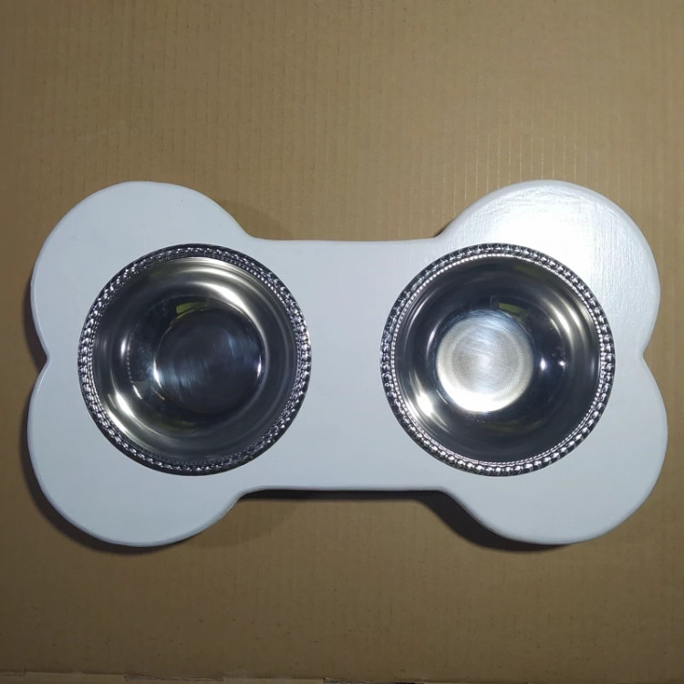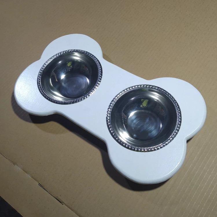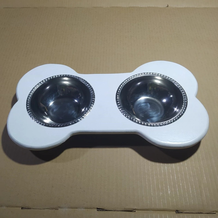 ظرف دو کاسه طرح استخوان پایه کوتاه مخصوص سگ و گربه در رنگ های متفاوت با پایه های پلاستیکی مخصوص سرامیک