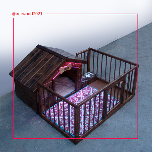 لانه مدل ویلایی سایز متوسط به همراه زیرانداز مخصوص، ظرف غذای دو کاسه و نور پردازی، ابعاد لانه 50x70 مخصوص سگ و گربه